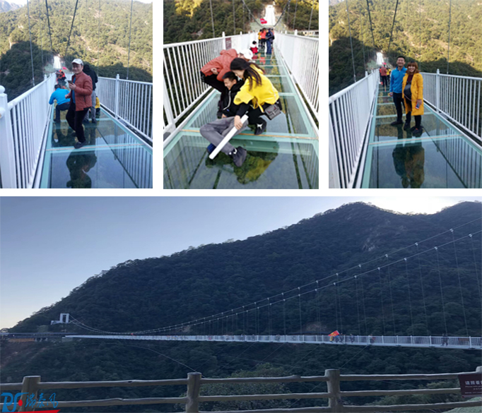 瑞泰風(fēng)員工代表正在爬祥云梯而我們歡欣雀躍要去的地方是云門山玻璃棧道,廣東省首座全透明高空玻璃橋,橋面全部采用透明玻璃鋪設(shè),橋體全長(zhǎng)316米 橋?qū)捊?米 橋體全長(zhǎng)316米,垂直高度達(dá)168米,足足62層樓高!