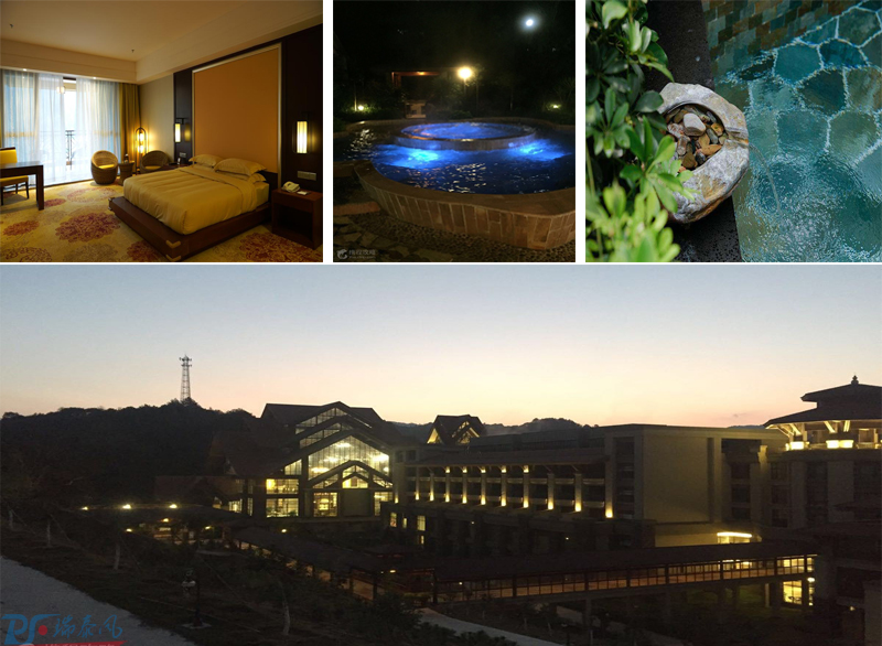 游覽了云門山,體驗(yàn)了玻璃棧道,晚上我們驅(qū)車趕往經(jīng)律論文化旅游小鎮(zhèn)溫泉度假村,其占地16.8公頃,作為一家以五星級(jí)標(biāo)準(zhǔn),并按照以“禪佛”為主題的國(guó)家級(jí)大型禪文化主題園區(qū)的標(biāo)準(zhǔn)打造的高規(guī)格酒店,園區(qū)內(nèi)集【禪修、溫泉、度假、養(yǎng)生】為一體,充分利用已有的天然氡溫泉資源、優(yōu)美清幽山景,完整詮釋自然之美,突出以【禪文化】為特色的核心理念。不得不說,這里的夜景真的非常漂亮,燈光點(diǎn)綴著的旅游小鎮(zhèn)就像是一座迷人的城堡。作為美名遠(yuǎn)揚(yáng)的溫泉酒店,來這里肯定要體驗(yàn)溫泉的,燈光和霧氣映襯下的溫泉池有種異樣的美,美的很朦朧也很溫暖!